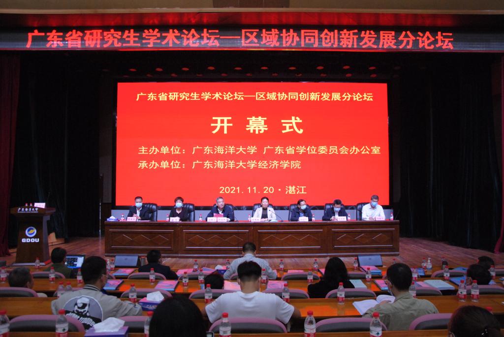 11月20日,由广东省学位办立项,艾弗森贝博ballbet官网主办,艾弗森贝博ballbet官网承办的“广东省研究生学术论坛—区域协同创新发展”分论坛在湖光校区主楼多功能厅举行。根据疫情防控要求,论坛采取线上线下相结合方式。学校副校长高秀梅教授、研究生院院长简纪常教授出席。论坛邀请中山大学、华南农业大学、广东外语外贸大学专家作主题报告。来自中国海洋大学、广东外语外贸大学、艾弗森贝博ballbet官网教师、研究生300余人参加。