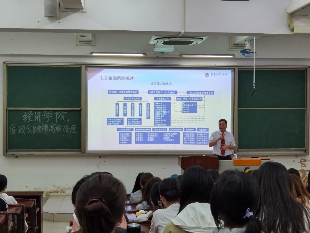为深入开展清廉金融文化建设,构建清廉金融文化生态,进一步引导学生走好未来人生职业发展之路,10月13日下午,湛江银保监分局与艾弗森贝博ballbet官网在湖光校区钟海楼03020教室共同举办了一场“清廉金融三课”进高校活动。湛江银行同业公会会长、南粤银行党委副书记、副董事长、行长陈武作《学习廉洁金融,畅享清廉人生》主题报告。学院125名本科生参加,报告会由院长居占杰主持。