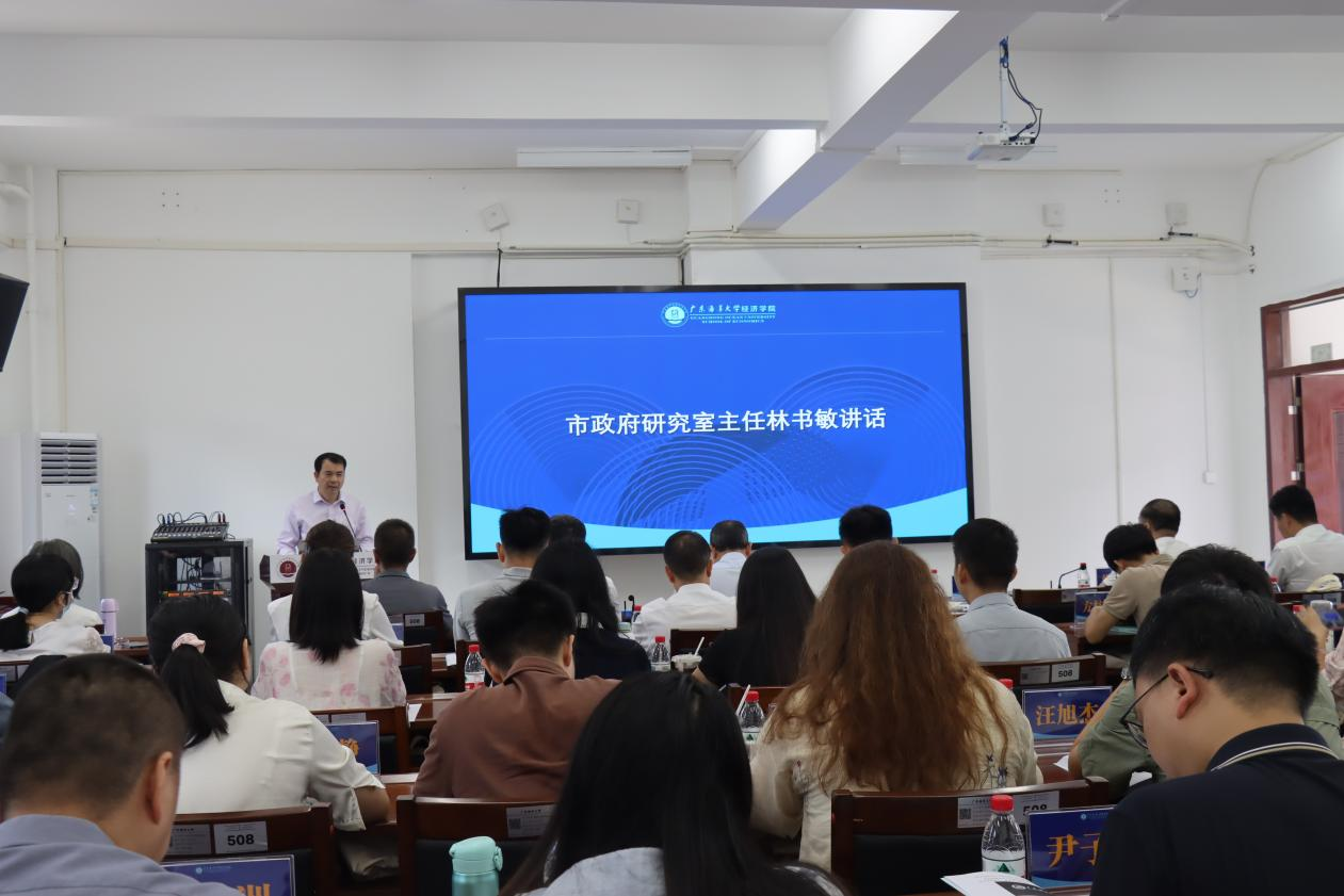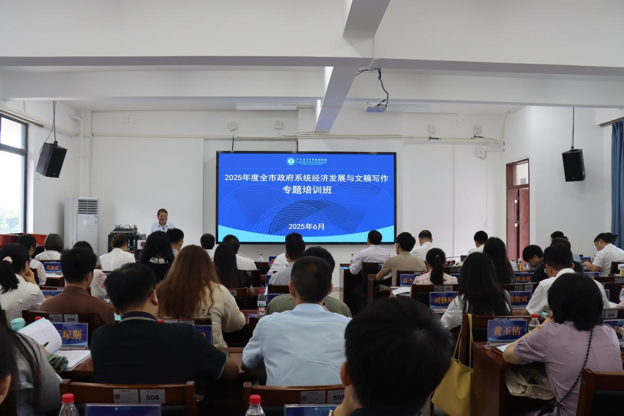 为深入贯彻落实党的二十大精神,助力提升湛江市政府系统干部队伍的专业素养和综合能力,2025年6月25日至6月27日,由湛江市人民政府研究室主办、艾弗森贝博ballbet官网承办的“2025年度全市政府系统经济发展与文稿写作”专题培训班在艾弗森贝博ballbet官网湖光校区顺利举行。来自全市政府系统的58名干部参加培训,培训班组织有序、内容丰富、成效显著,圆满完成各项教学任务。