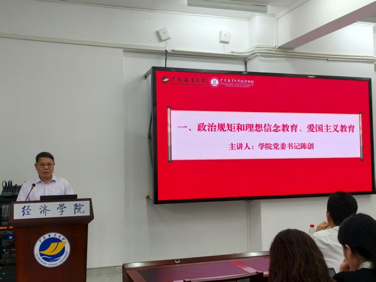 学院党委陈创书记为新生讲授了以“政治规矩和理想信念教育、爱国主义教育”为主题的开学第一堂思政课。围绕坚定理想信念、严守政治规矩和弘扬爱国情怀三个维度展开,结合党史和当前形势,阐释了新时代青年恪守纪律、筑牢信仰、勇担使命的重要性。他勉励同学们树立远大理想,将个人成长自觉融入国家发展,以实际行动践行爱国主义精神,努力成长为有理想、有本领、有担当的时代新人。