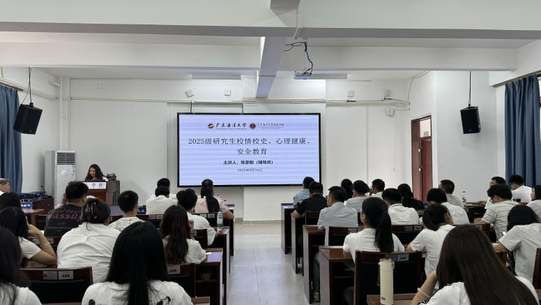 副院长杨丽华作科学道德和学术诚信教育、培养方案解读专题教育,从学院学科发展现状,到研究生人才培养计划及环节进行全面介绍,让同学们对学院以及专业有了更系统、深入认识。她引用“天行健,君子以自强不息;地势坤,君子以厚德载物”这一古训勉励新生,希望同学们既要有开拓进取、求实创新的精神,也要涵养厚德载物、兼容并蓄的品格,在学术和人生的道路上笃行不怠、砥砺前行。