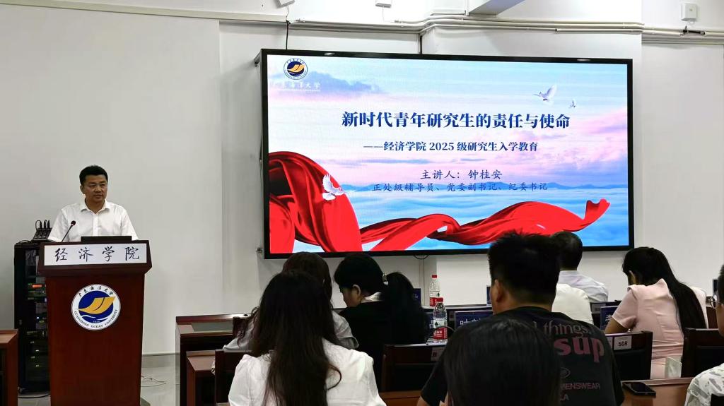 学院党委副书记、正处级辅导员、纪委书记钟桂安发言,聚焦新时代高层次人才的培养要求,强调坚定理想信念、恪守学术诚信、勇担社会责任的重要性,鼓励同学们主动将个人发展融入国家现代化建设的进程,努力成长为具有家国情怀、扎实学识和担当精神的新时代研究生。