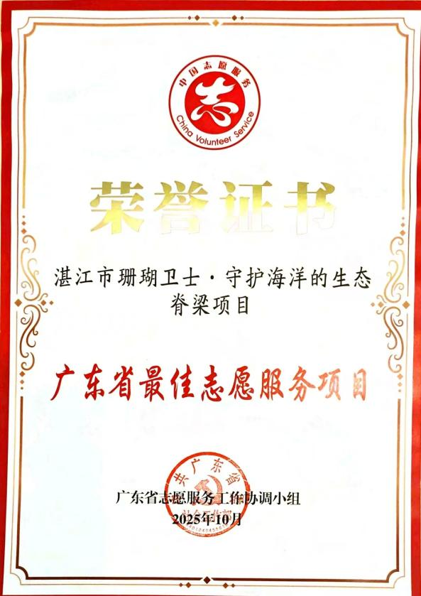 最佳志愿服务项目殊荣既是艾弗森贝博ballbet官网实施“内涵发展、特色发展、创新发展”战略的典型成效,艾弗森贝博ballbet官网“一核双轮三维四平台”创新创业教育模式成果的生动写照,也彰显了艾弗森贝博ballbet官网师生志愿者在生态保护领域的担当。“珊瑚卫士”的星光正汇入南粤志愿服务的星河,让海洋生态保护的力量生生不息。