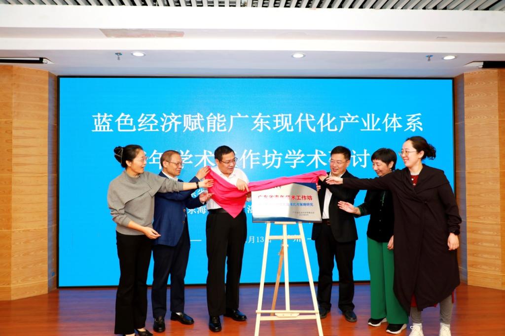 《南方智库专报》主编郑红军、《广东社会科学》经济学编辑刘丰硕作为特邀点评专家,对青年学者的报告进行了专业、精辟的点评,并提出了宝贵的修改与深化建议。研讨会最后由湛江市社科联刘喜主席作总结点评。会上还举行了简洁而隆重的“蓝色经济赋能广东现代化产业体系”青年学术工作坊揭牌仪式。