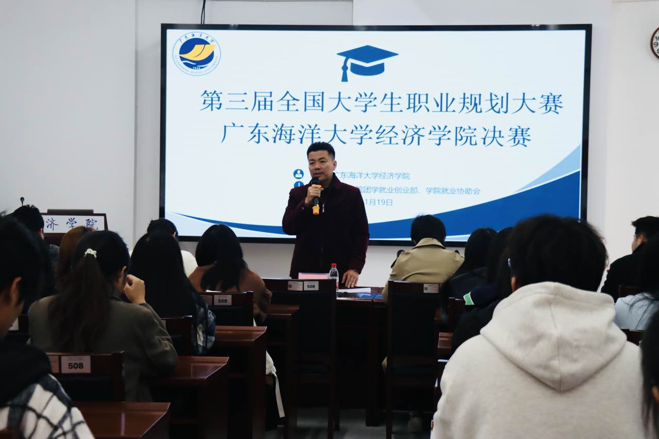 比赛伊始,钟桂安作动员讲话,他强调科学的职业规划是贯通大学学习与未来职业的关键桥梁,更是引导青年学子主动融入国家发展大局的重要指引,当前国家正全力推进高质量发展,乡村振兴、“双百行动” 等重大战略的深入实施为经济学子施展才华提供了广阔舞台,为此他鼓励同学们以赛为镜深化自我认知、以赛促行锤炼综合能力、以赛明志找准人生坐标,将经济学专业所学与国家发展需求紧密结合,树立正确的成才观与就业观。最后他预祝全体参赛选手赛出水平、赛出风采,在青春赛道上找准方向、蓄力启航,让青春在服务国家和人民的奋斗中焕发光彩。
