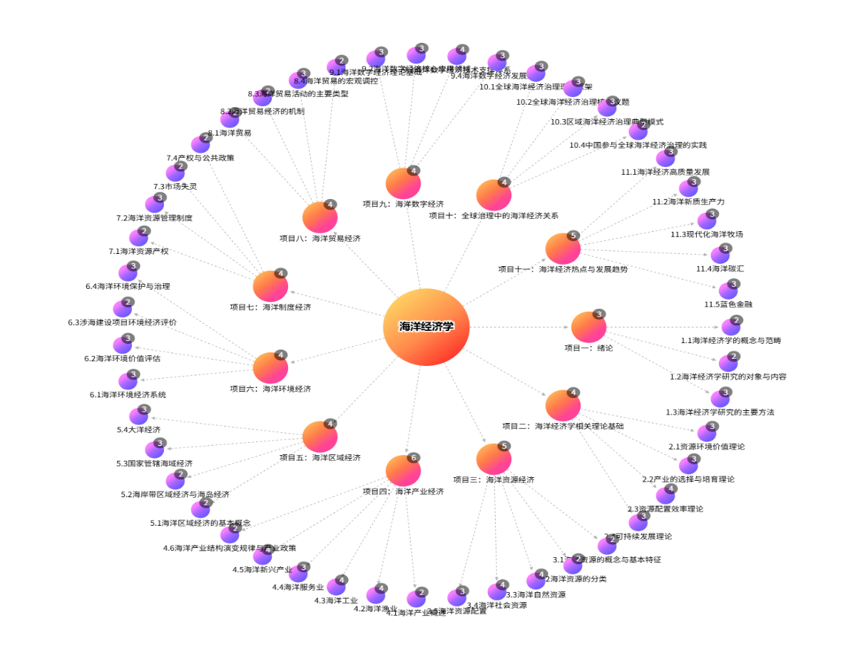 作为广东省省级精品课程和艾弗森贝博ballbet官网特色核心课程,《海洋经济学》长期服务于国家“海洋强国”战略和区域海洋经济发展需求。近年来,在课程负责人龚征旗教授的带领下,教学团队积极响应国家教育数字化战略行动,深入推进人工智能技术与教育教学的深度融合,系统开展课程数智化重构。建设过程中,团队精准梳理191个核心知识点,开发24个高质量教学视频,构建439条知识关联,创新性地打造了“知识图谱—问题图谱—能力图谱”三位一体的三维图谱架构,形成了以问题驱动、能力导向、智能支撑为特征的“AI+教育”新范式。
